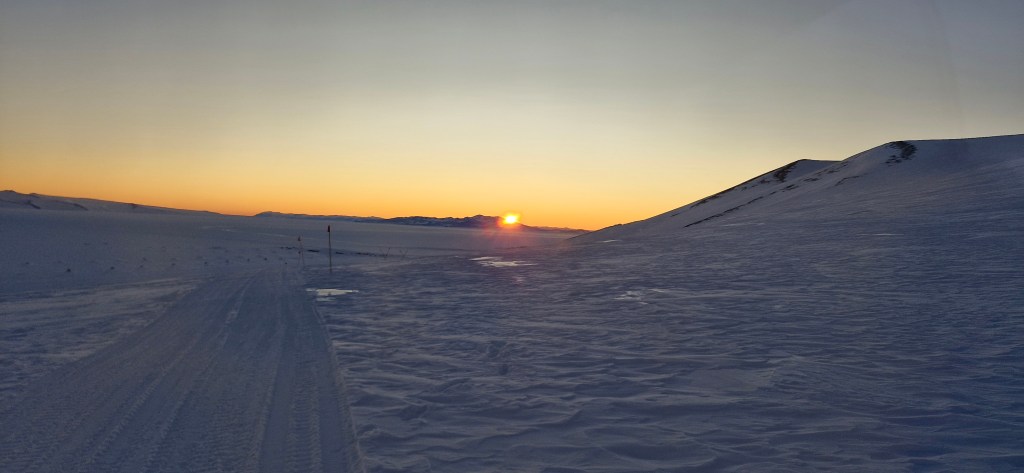 As it was the final sunset of this season (the sun won’t go below the horizon again for about 6 months now), we took the opportunity to drive the Hagglund up to Castle Rock at 12:30am for a better view, and about an hour later it rose again.