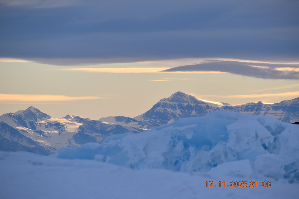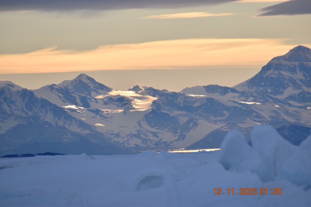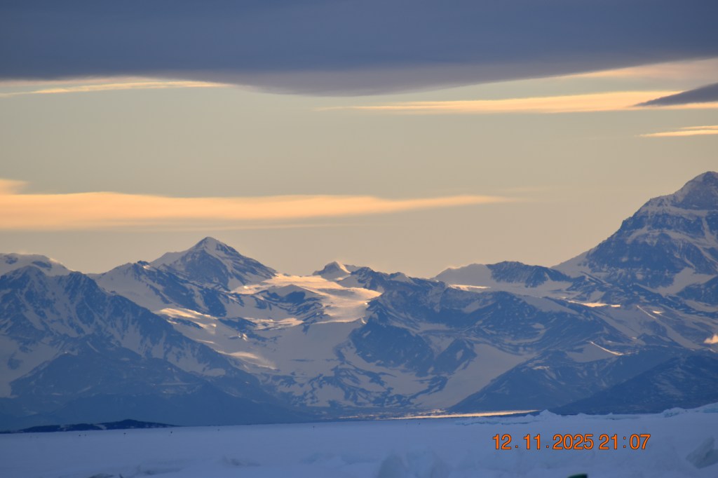 The sun was making the Trans-Antarctic mountain range look really lovely last night, especially the shiny reflections of the glaciers.
